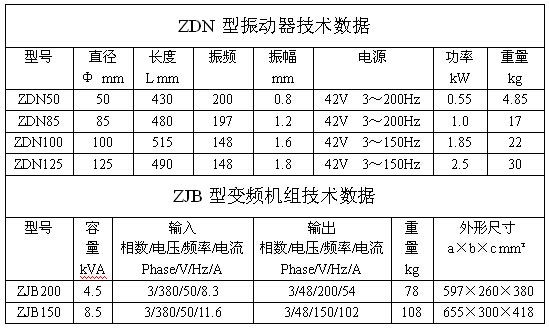 1、高頻振動棒型號分為ZDN50、ZDN85、ZDN100。這3種振動棒需要和配套的ZJN150和ZJB200的變頻機(jī)組使用,不能直接接電使用。